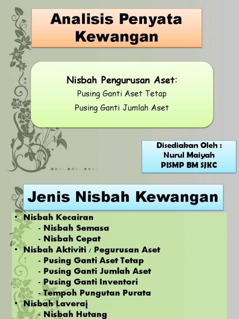 Analisis dan Tafsiran Penyata Kewangan untuk Membuat Keputusan 11 Analisis Penyata Kewangan dan Perbandingan Prestasi Analisis ini amat penting bagi sesebuah perniagaan untuk membuat perancangan dan membuat keputusan supaya perniagaan sentiasa menjadi lebih baik Terdapat 3 jenis nisbah kewangan yang perlu dikuasai dalam modul ini iaitu. Tentukan sama ada nisbah berikut adalah nisbah setara atau tidak. 6 Calon seharusnya dapat.