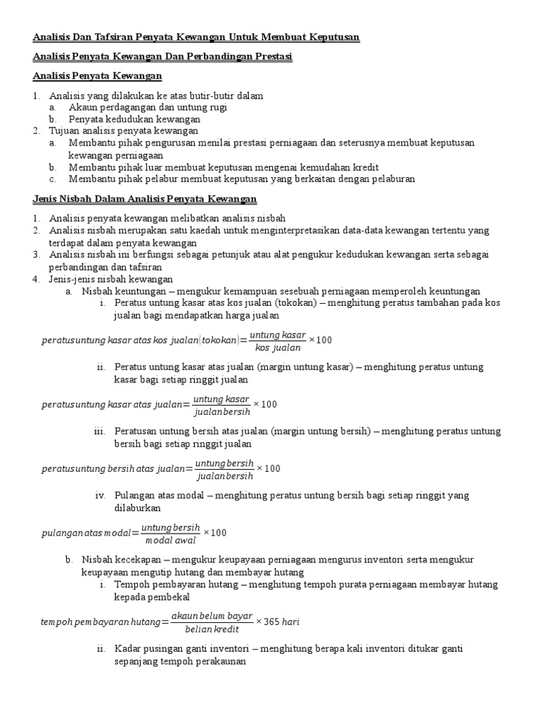 Analisis Dan Tafsiran Penyata Kewangan Untuk Membuat Keputusan Pdf